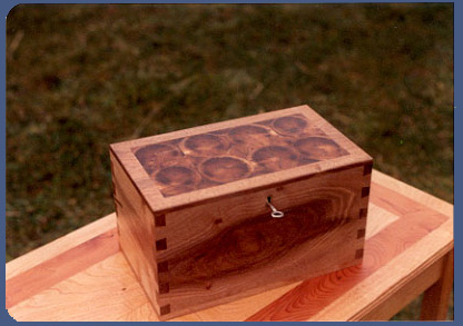 Irish Grey Walnut Writing Box. Through dovetails, 2 secret drawers. Laburnum Oyster Inlay on Lid. 13" x 7" x 6"