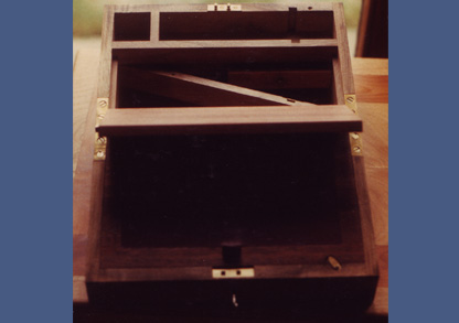 Irish Grey Walnut Writing Box. Through dovetails, 2 secret drawers. Laburnum Oyster Inlay on Lid. 13" x 7" x 6"