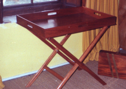 Recycled Wardrobe Mahogany Butler's Tray on Stand 35" x 17" x 29"