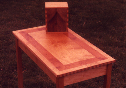 Occasional Table. Top of Spanish Chestnut with Yew Banding, reeding around edge. Oak legs and ash aprons.